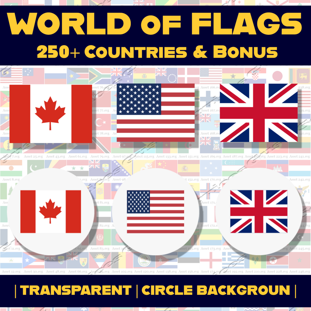 Digital World Country Flags: Icon Shapes with Circle Backdrop - 250+ files x 2 styles x 4 formats, world flag svg bundle, flags icons