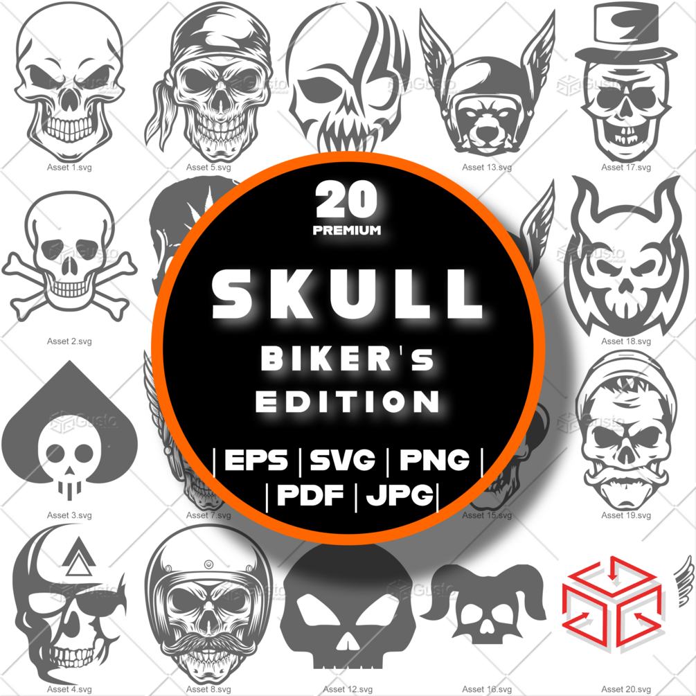 Calavera SVG / Calavera Clipart / Archivos de corte / Silueta / Archivos vectoriales para Cricut - Bikers Edition Skulls SVG Bundle -png, pdf, svg, eps, dxf